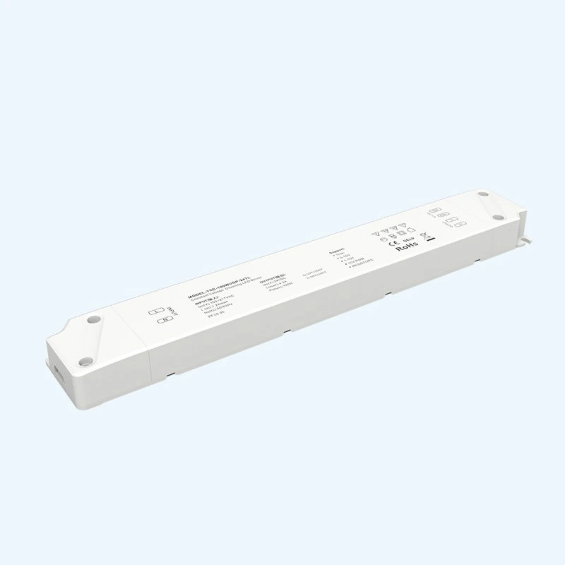 Väljundi osas pakub see 24 V 12 V konstantse pingega 0–10 V LED-valgustustrafo kasutajatele paindlikku pingevalikut. Külgmist DIP-lülitit kasutades saate hõlpsalt vahetada stabiilse 12V või 24V alalispinge väljundi vahel, mis sobib ideaalselt enamiku turul pakutavate madalpinge LED-ribade, moodulite ja jäikade ribade vahel. Olenemata sellest, kas seda kasutatakse 0–10 V 100 W hämardatava LED-draiveri 12 V 24 V pideva pingega toiteallika rakenduses, võib see tagada stabiilse pinge ja ühtlase valguse. Selle täiustatud konstantse pinge tehnoloogia koos spetsiaalselt optimeeritud vooluahelaga saavutab suurepärase siseruumides kasutatava värelusevaba 0–10 V hämardava LED-draiveri efekti, kõrvaldades täielikult nähtava virvenduse, kaitstes nägemist isegi madala heledusega ning pakkudes mugavat ja tervislikku valgustuskeskkonda.