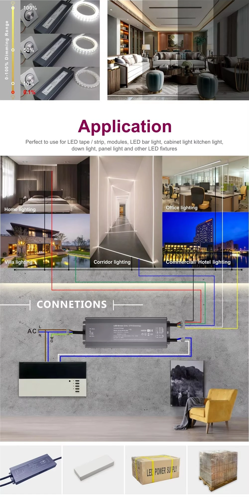 Starwell, Hiinas tegutsev professionaalne LED-draiverite tootja, meie 100 W DALI konstantse pingega CCT hämardamisega LED-draiver on DALI-2 sertifikaadiga, pakkudes täpset digitaalset hämardamist vahemikus 0,1% kuni 100% sujuvaks valguse juhtimiseks. See sisaldab olulist kaitset lühise, ülekoormuse ja ülekuumenemise eest koos passiivse jahutusega vaba õhukonvektsiooni kaudu.