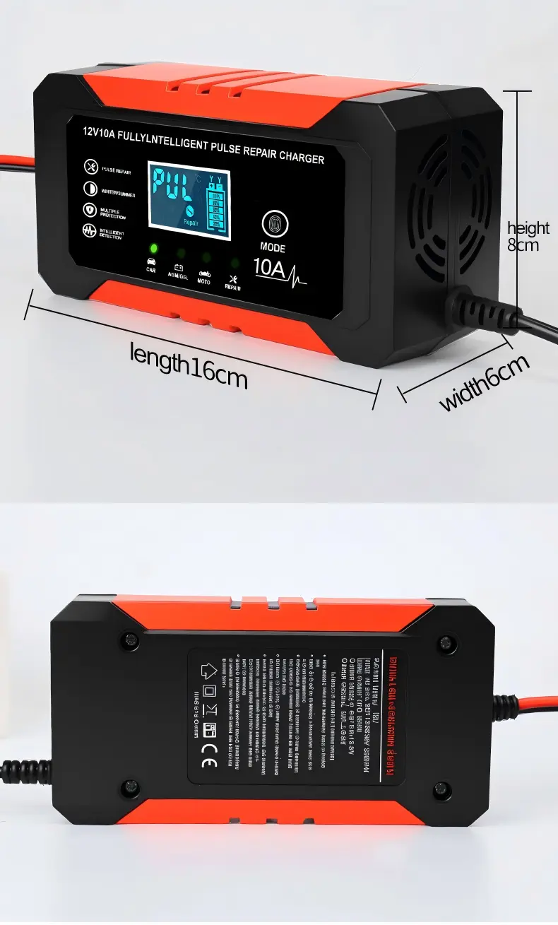 Sellel intelligentsel akulaadijal, mis on varustatud täpsete tehniliste näitajatega, on universaalne sisendpinge vahemik 110–230 V vahelduvvoolu (50/60 Hz), mis tagab ühilduvuse elektrivõrkudega kogu maailmas. See tagab stabiilse 12 V alalisvoolu 10 A laadimisvooluga, pakkudes ühtlast võimsust akude kiireks laadimiseks – suudab 100 Ah pliiaku täielikult laadida ligikaudu 10 tunniga, mis on oluliselt kiirem kui tavalised 5 A laadijad. Üle 95% energiatõhususega minimeerib see energia raiskamist, samas kui selle kompaktne alumiiniumkorpus (170 × 90 × 50 mm, 1,0 kg) tagab teisaldatavuse ja vastupidavuse.