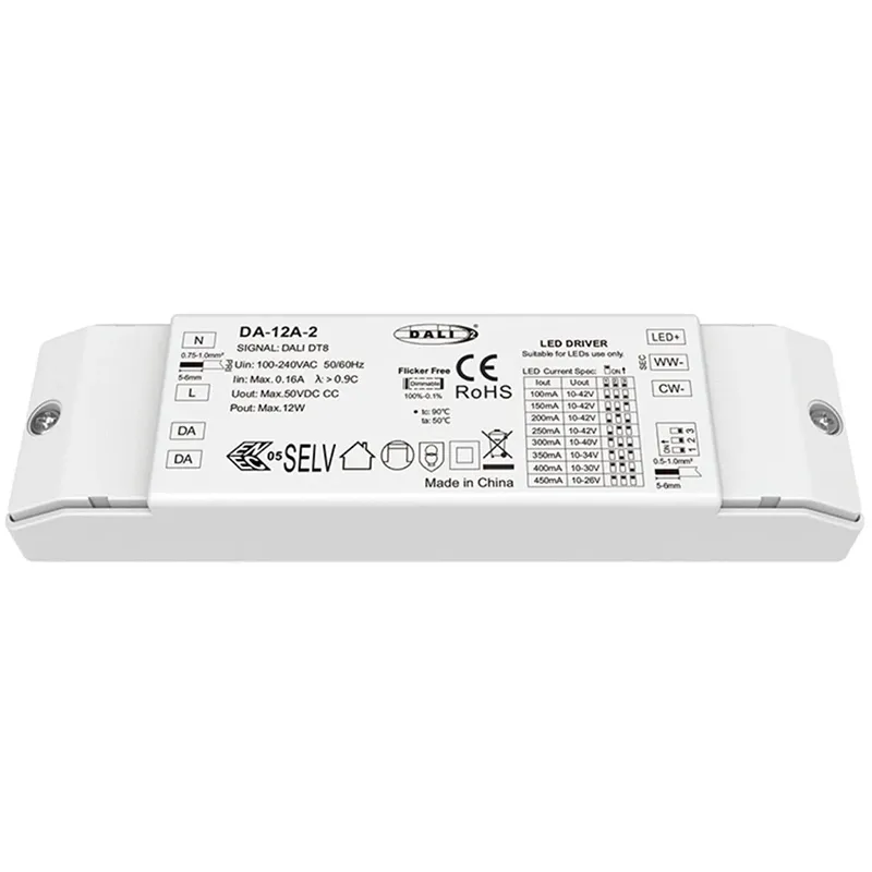 STARWELLi tehase kvaliteetne 12W DALI CW WW CCT hämardatav LED-draiver on loodud esmaklassiliste häälestatavate valge valgustuse rakenduste jaoks, mis nõuavad täpset juhtimist ja usaldusväärset jõudlust. See kompaktne ja tõhus draiver tagab stabiilse 12W (12V, 1000mA) konstantse vooluväljundi, tagades ühendatud LED-moodulite optimaalse jõudluse ja pikaealisuse. Meie kvaliteetsel 12W DALI CW WW CCT hämardataval LED-draiveril on keerukas topelt-DALI liides, mis toetab nii DALI-2 hämardamist (DT8) sujuvaks 10%-100% sujuvaks hämardamiseks kui ka sõltumatut CCT (korrelatsiooniga värvitemperatuuri) häälestust 2700K soojast valgest jaheda päevavalguseni 6500K. Muljetavaldava tüüpilise >90% kasuteguri ja suure võimsusteguriga (PF>0,9) minimeerib see energia raiskamist ja võrgukoormust. Kompaktses IP20-kategooria korpuses asuv see pakub täiskoormusega tööd laias temperatuurivahemikus -20 °C kuni +50 °C, muutes selle mitmekülgseks ja intelligentseks toitelahenduseks arhitektuurse, äri- ja kõrgetasemelise elamuvalgustuse jaoks.