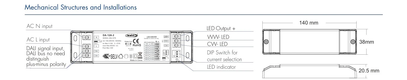 Kompaktses IP20 korpuses asuv hämardatav LED-draiver lihtsustab paigaldamist isegi kitsastesse kohtadesse, nagu LED-profiilid või kinnituskorpused. Konstantse voolu väljundi, laia CCT häälestuse ja tööstusstandardi DALI-2 ühilduvuse kombineerimisel on see ideaalne ja tulevikukindel draiver häälestatavate valgete allvalgustite, lineaarsete valgustite ja arhitektuurse valgustuse jaoks – integreerudes sujuvalt kaasaegsetesse nutikatesse valgustusökosüsteemidesse mitmekülgse püsivoolu LED DALI CCT DiDrivermm-ina.