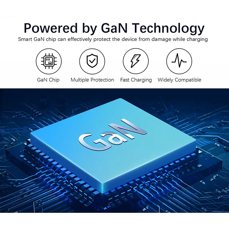 GAN: GaN-kiipidega on 140 W PD laadija suurus tavapäraste laadijatega võrreldes 50% väiksem, mistõttu on seda lihtne ärireisidel või kontoris kaasas kanda, ilma et see võtaks ruumi pistikupesas.