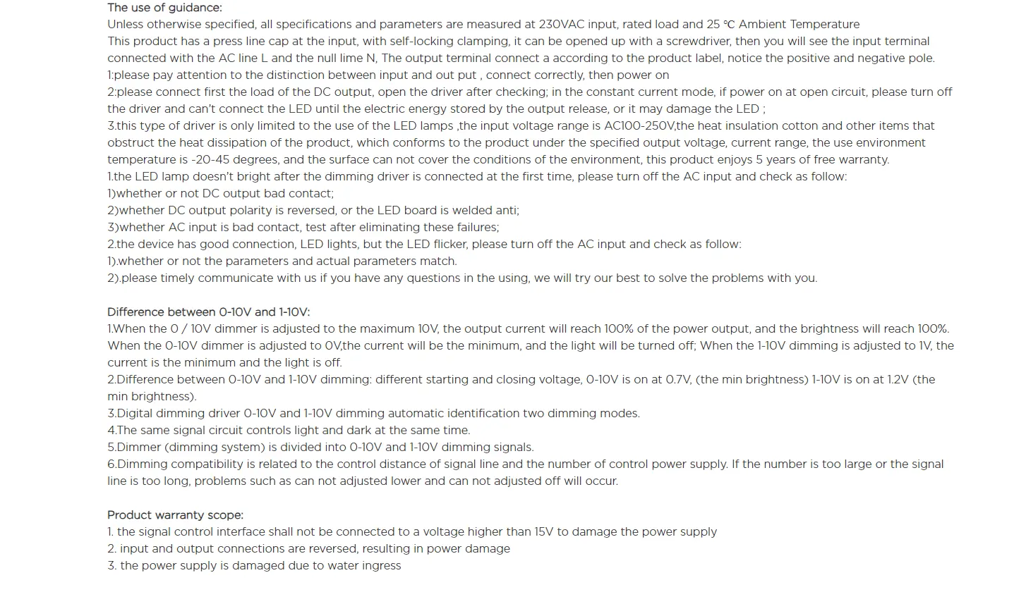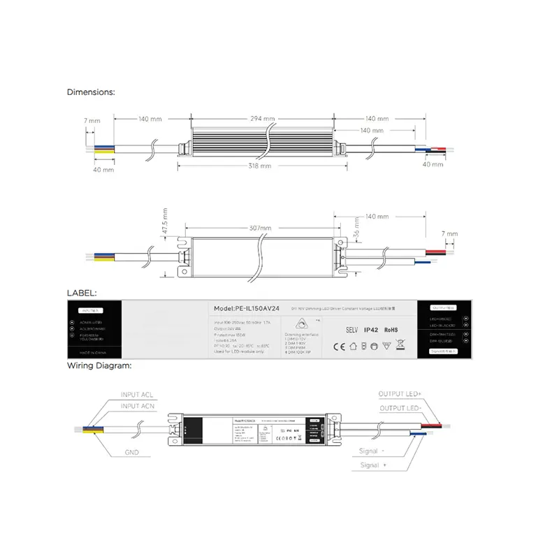 Varustatud standardse 0–10 V hämardusliidesega, toetab see sujuvat heleduse reguleerimist vahemikus 1% kuni 100%, mis ühildub enamiku juhtivate dimmeritega turul. Kõrge, kuni 95% energiatõhususega ja laia vahelduvvoolu sisendvahemikuga 100–277 V, kohandub see pingevabalt ülemaailmsete pingestandarditega ja sobib ideaalselt rahvusvaheliste projektide jaoks.