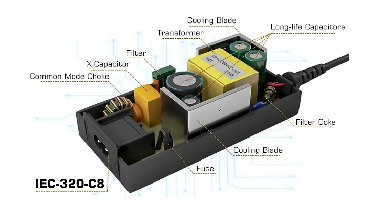 LLC resonantsahela konstruktsiooniga varustatud konversioonitõhusus on kuni 92% (tavalise koormuse korral), ooterežiimi energiatarve on nii madal kui 0,3 W – see säästab standardsete adapteritega võrreldes umbes 7 dollarit aastas elektrikuludelt. Samal ajal on selle töötemperatuur 8-10 °C madalam kui tööstusharu keskmine, pikendades selle kasutusiga üle 50 000 tunni.