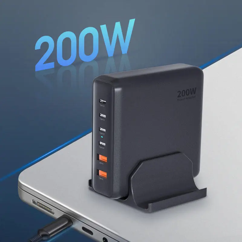 GAN 200 W kiirlaadija 4 USB-C + 2 USB-A 200 W PD laadija