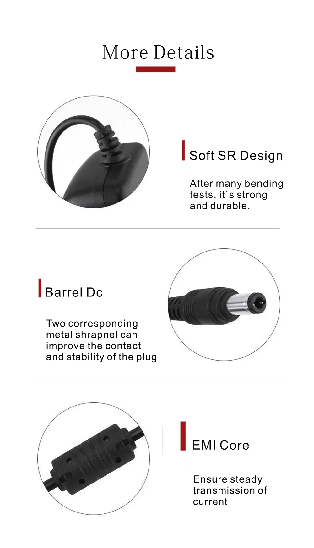 Stabiilne 72 W väljund: pakub püsivat 24 V alalispinget kuni 3 A vooluga, pakkudes ühendatud seadmetele piisavalt toidet.
