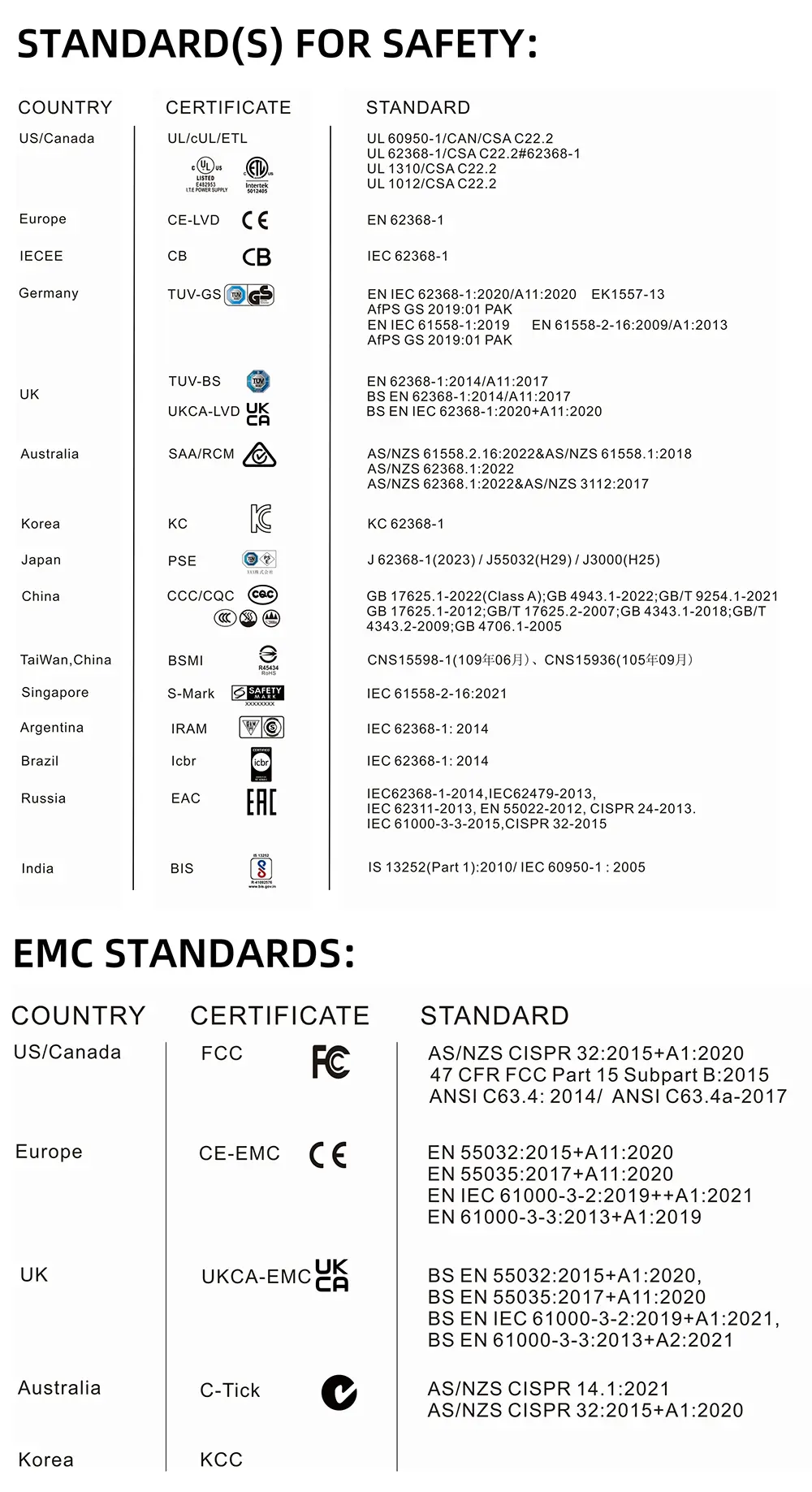 ETL CE FCC CB CB CB KCC KCC KCC BIS BIS RCC CCC CCC CCC CCC CCC CCC CCUL RoHS RoHS |