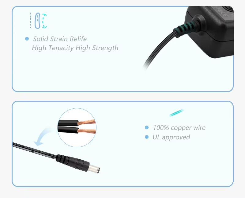 Põhjalik turvakaitse: paneme turvalisuse alati esikohale. Sellel toiteallikal on sisseehitatud ülevoolukaitse (OCP) ja ülepingekaitse (OVP) ning see on usaldusväärne OCP OVP 24W vahetatav adapter Led-valgusti jaoks. See võib tõhusalt ära hoida juhuslikke lühiseid ja ebastabiilset pinget, tagades, et teie LED-lambid ja muud väärtuslikud seadmed on kasutamise ajal ideaalses seisukorras.