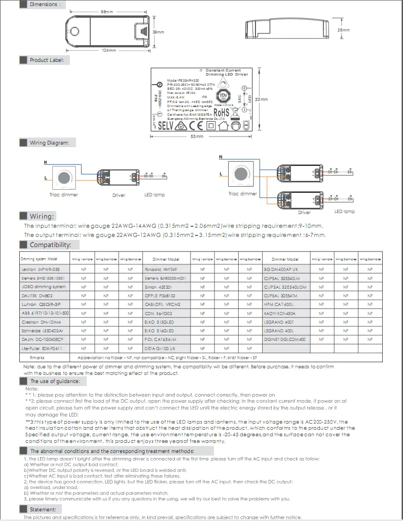 Kvaliteetne PE294R 42V max 200ma konstantse vooluga triac hämardamise LED-draiver on üks Hiina tootja Starwelli välja töötatud pidevvoolu hämardamisega LED-sukeldujaid, millel on kõrge võimsustegur, kõrge kasutegur, kõrge täpsus, tõhusa stabiilse väikese kadu lüliti juhtkiibi kasutamine koos suure jõudlusega komponentidega, mis muudavad selle madala müra ja pika elueaga.