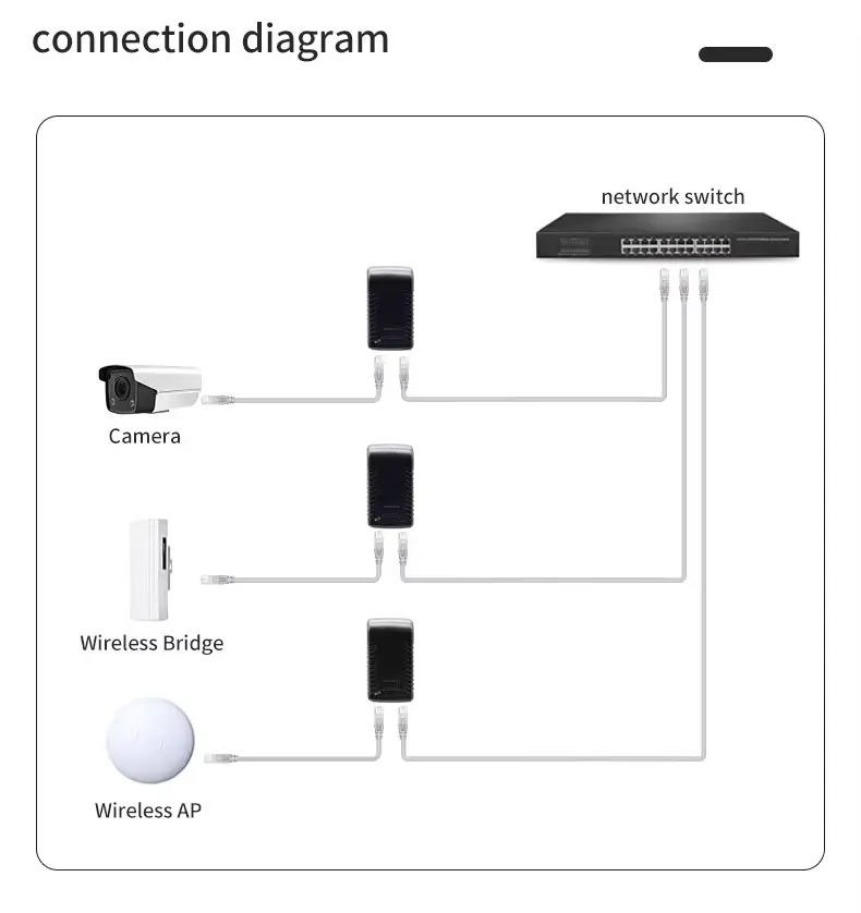 See pihusti on loodud spetsiaalselt võrguseadmete jaoks, mis vajavad Etherneti kaudu 48 V alalisvoolu sisendit. See ühildub laialdaselt tööstusstandardi seadmetega, sealhulgas: