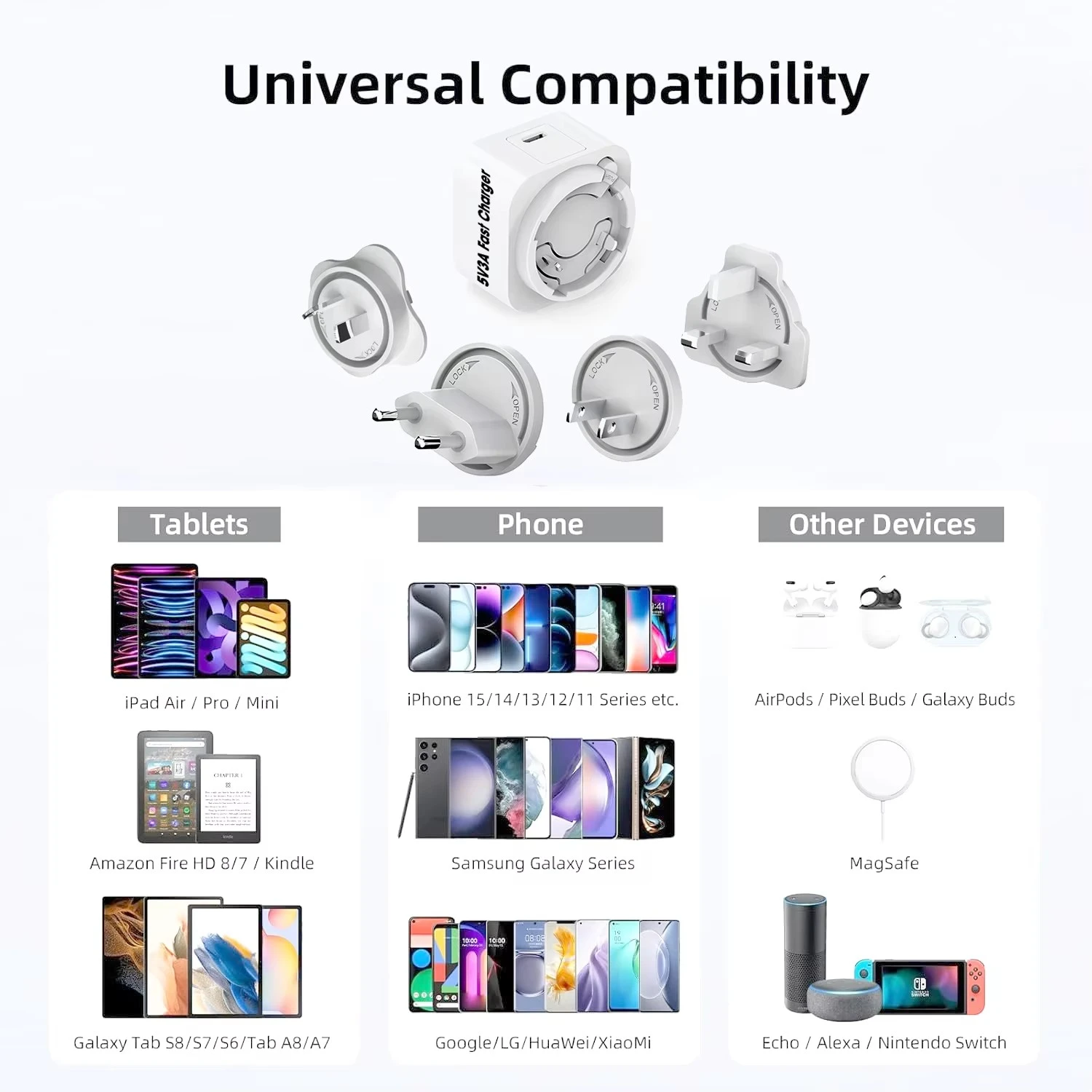 See adapter, mis sobib ideaalselt nutitelefonide, tahvelarvutite, kaasaskantavate kõlarite ja muu elektroonika toiteks, ühendab kiiruse, ohutuse ja globaalse mitmekülgsuse ühes kompaktses lahenduses.