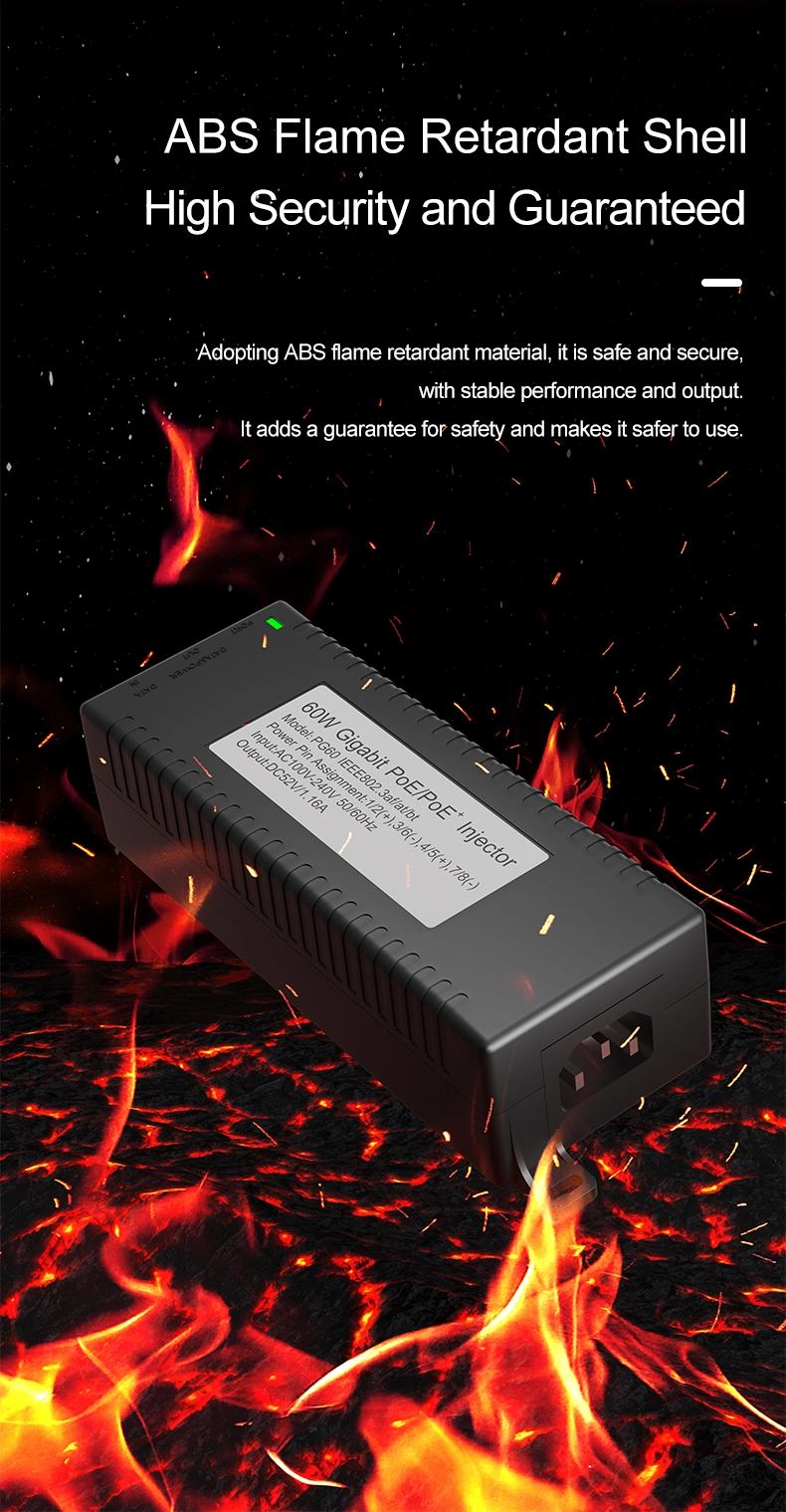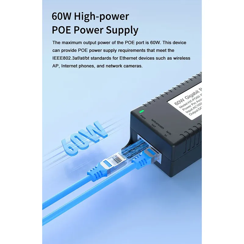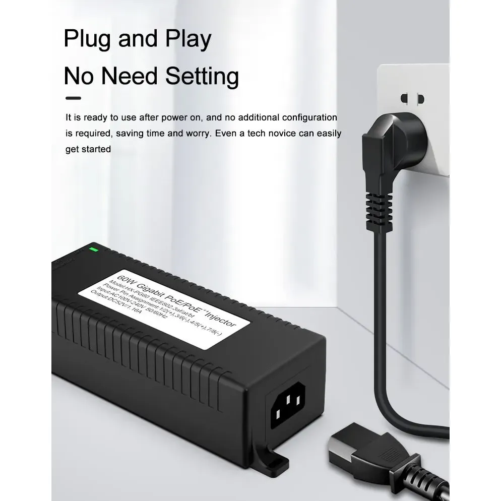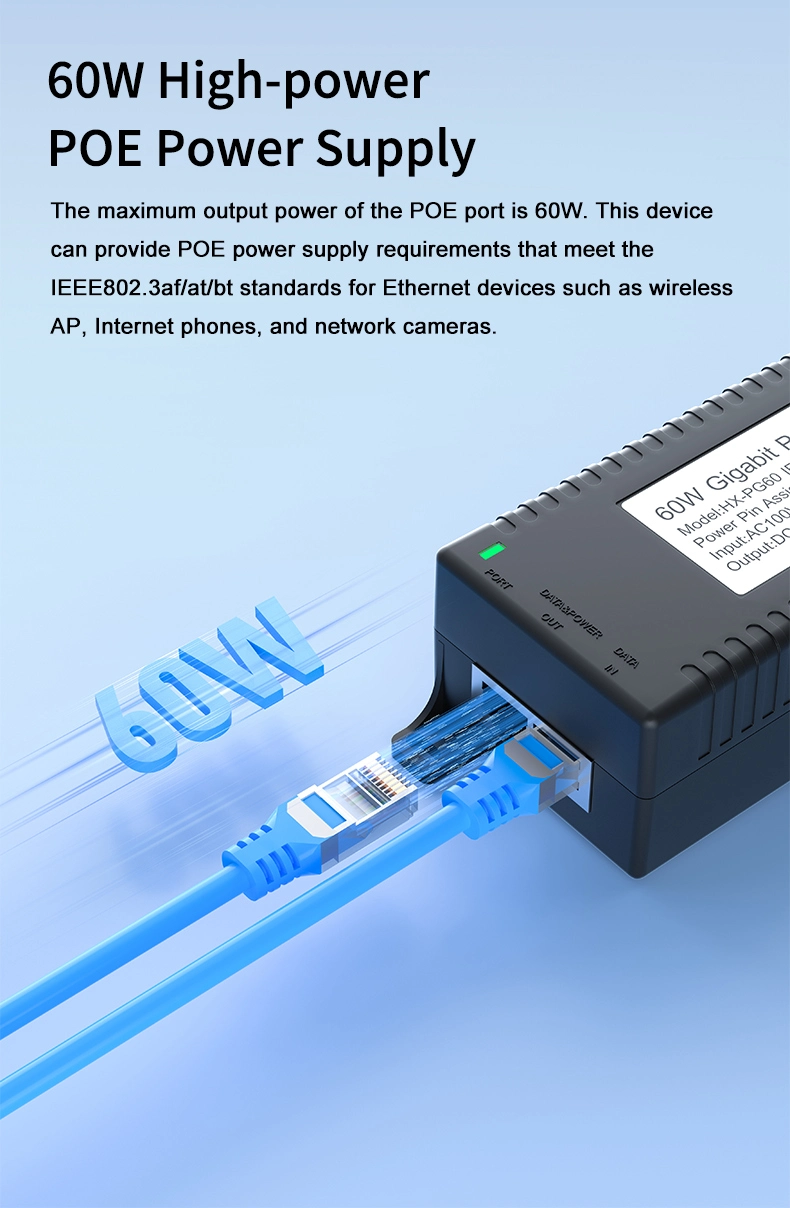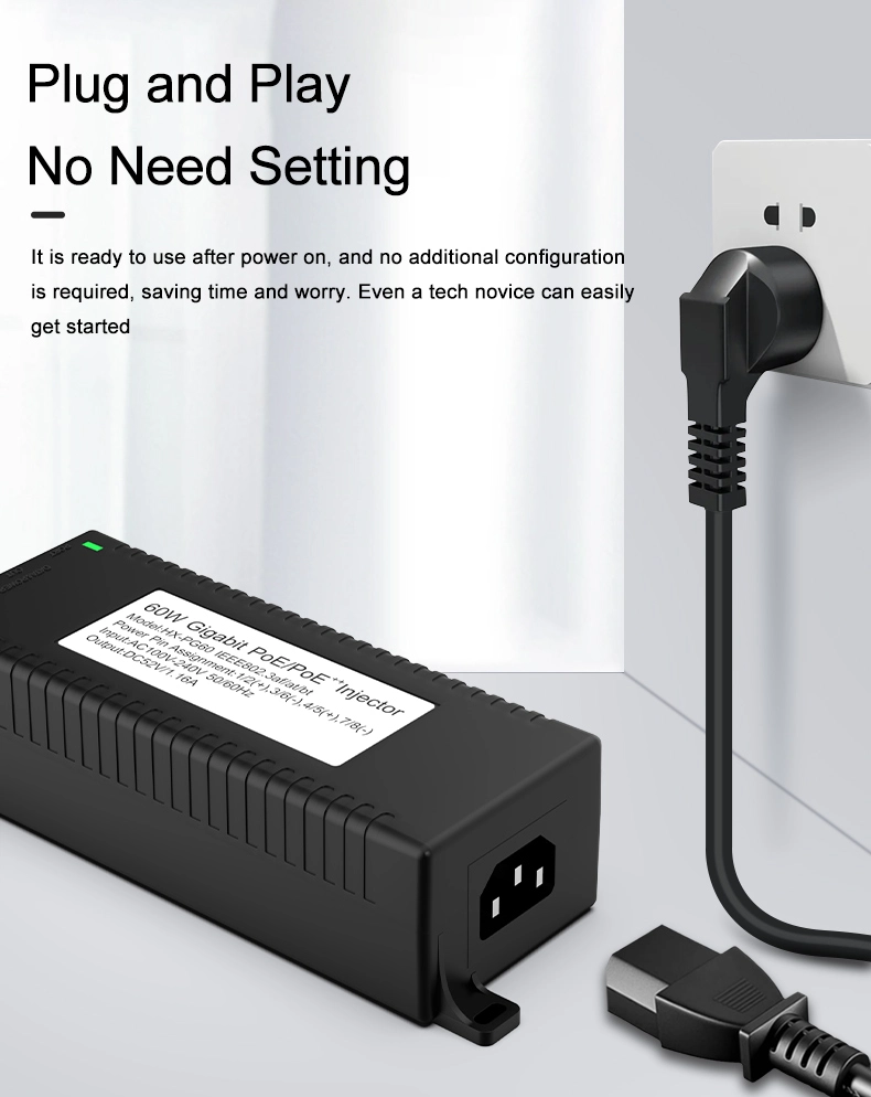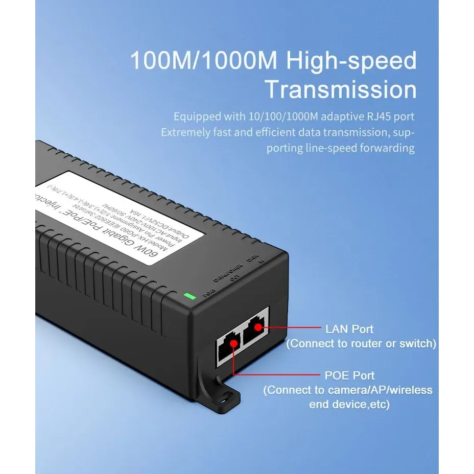 Turvavalve: gigabitine 60 W lauaarvuti POE injektor IP-kaamera turva- ja võrguseadme jaoks tagab IP-kaameratele ja PTZ-kaameratele stabiilse toite.