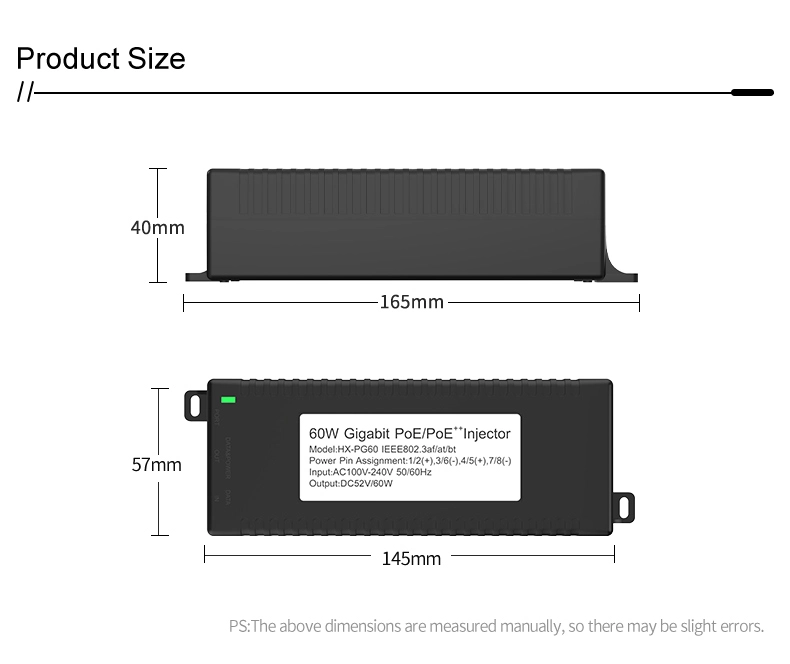 Kõrgepingelise väljundi disain: omab 56 V väljundit, mis minimeerib tõhusalt liinikadu ja suurendab toiteedastuse tõhusust pikkadel vahemaadel.