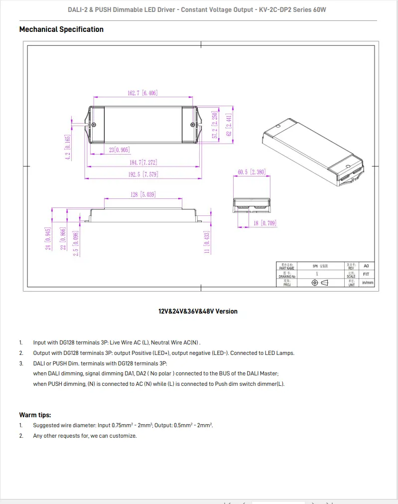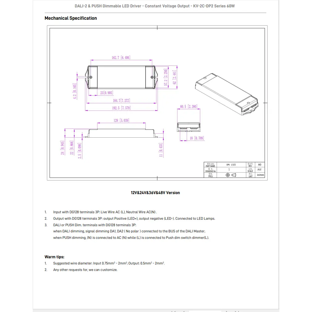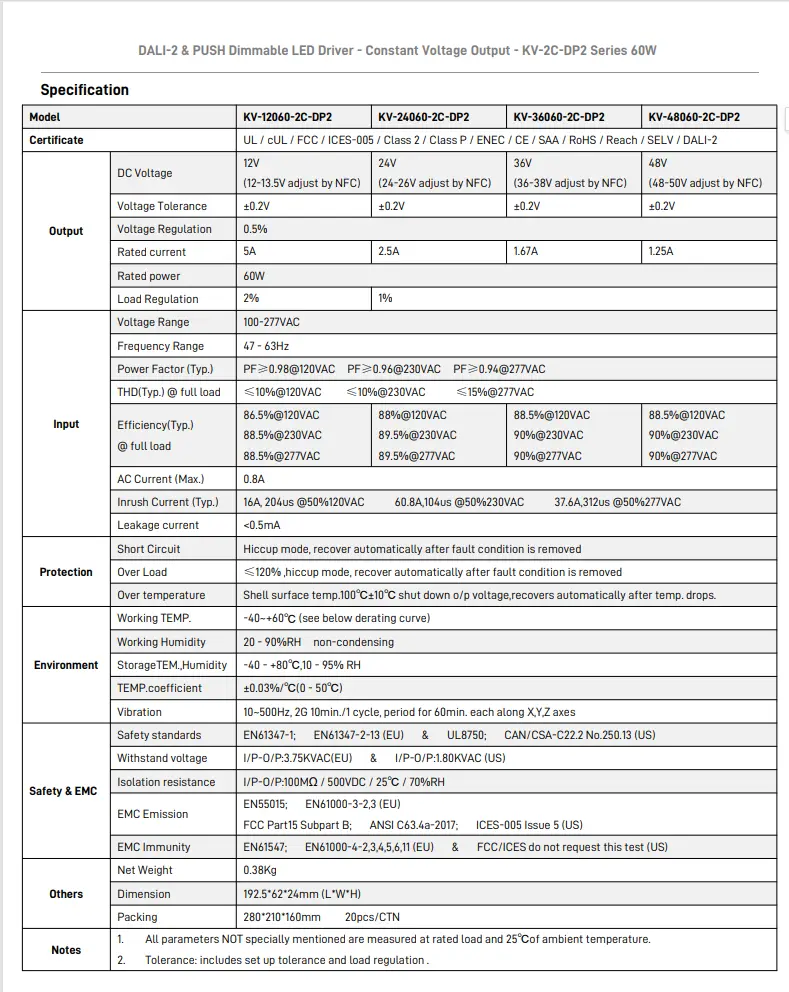 Hämardusfunktsioon: DALI-2 & PUSH 2 in 1 hämardus (CCT). PWM väljundsagedus 4KHz.