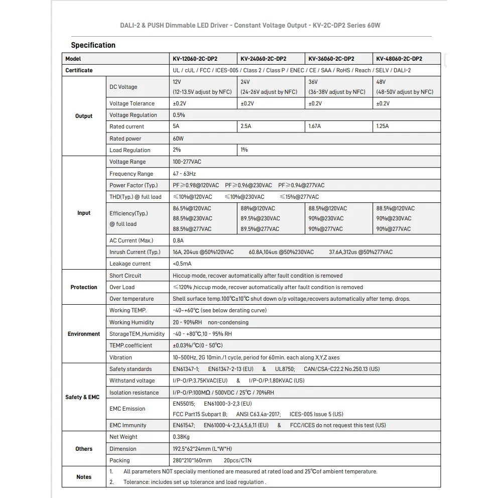 UL / cUL / FCC / ICES-005 / Klass 2 / Klass P / ENEC / CE / SAA / RoHS / Reach / SELV / DALI-2 |