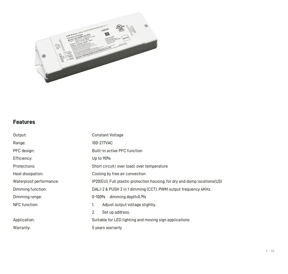 Juht kasutab loomulikku konvektsioonjahutust ja täielikult suletud plastkorpust, mis sobib kuiva või niiske sisekeskkonna jaoks.
