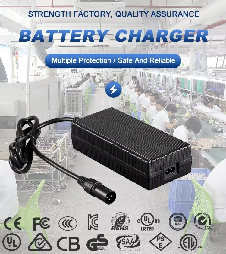 Globaalne ühilduvus ja kindel ohutus: Universaalse 100–240 VAC sisendiga töötab see sujuvalt kogu maailmas. Täiustatud kolmeastmeline nutikas laadimine (CC/CV) optimeerib aku seisundit, samas kui laiaulatuslikud kaitsed (sh lühis, ülepinge, ületemperatuur ja ülekoormus) tagavad ohutu ja muretu töö. Vastupidav korpus on valmistatud tulekindlatest materjalidest, et suurendada töökindlust nõudlikes keskkondades.