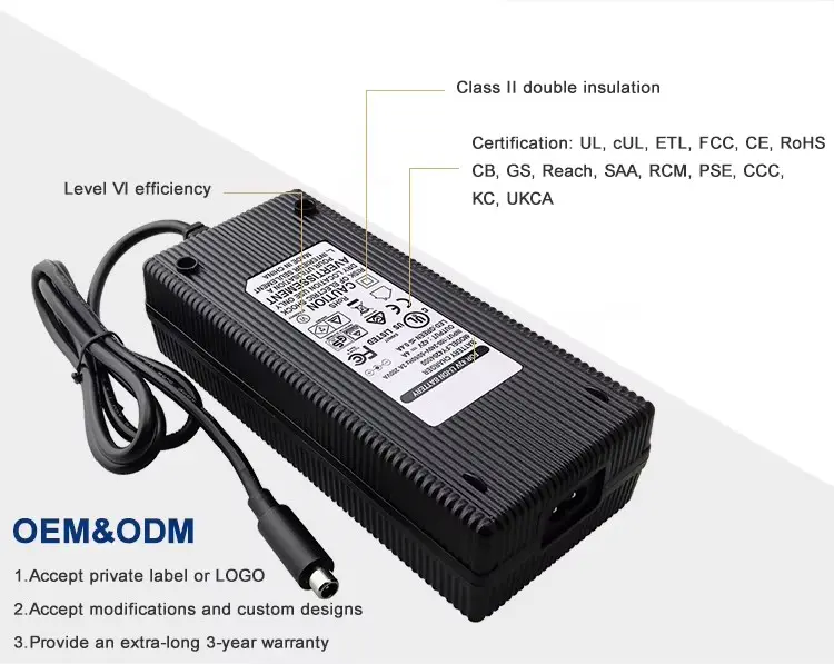 UL-, ETL-, CUL-, GS-, CE-, BS-, SAA-, KC-, PSE-, CB-, FCC-, EMC-, RoHS-, REACH-standardite järgi sertifitseeritud laadija pakub tõhusat, kiiret ja ohutut toidet nõudlike elektriseadmete jaoks.