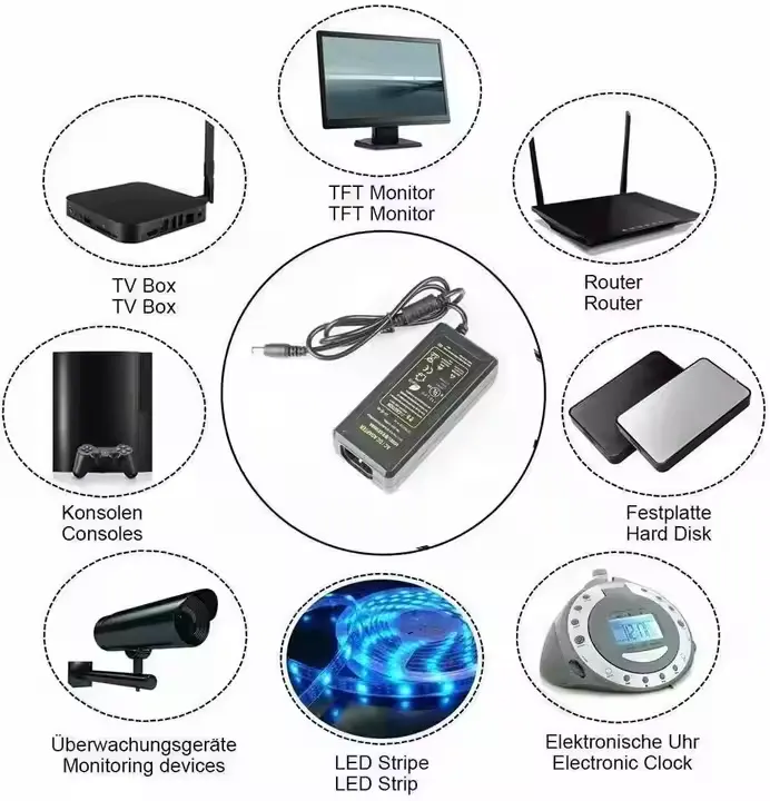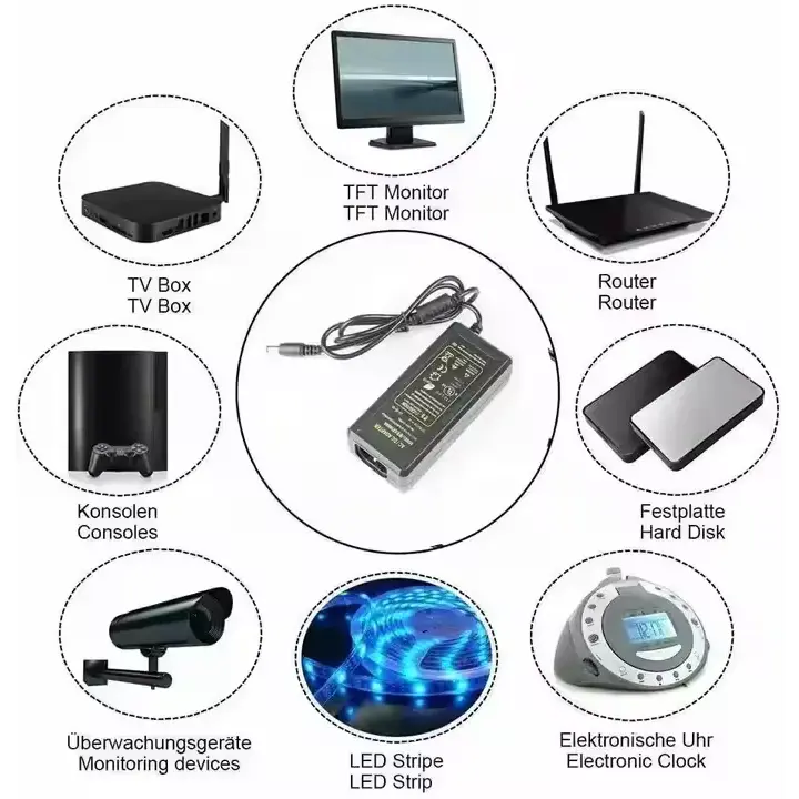 See adapter, mis ühildub erinevate seadmetega, nagu lauaarvutid, tööstuslikud juhtimissüsteemid, meditsiiniseadmed ja suure võimsusega välisseadmed, pakub mitmekülgset ja usaldusväärset toitelahendust nii professionaalseteks kui ka isiklikeks rakendusteks.
