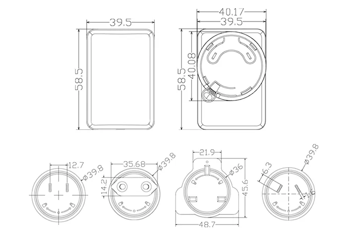 12V 24V vahetatava pistikuga toiteadapteri mõõtmed (mm):
