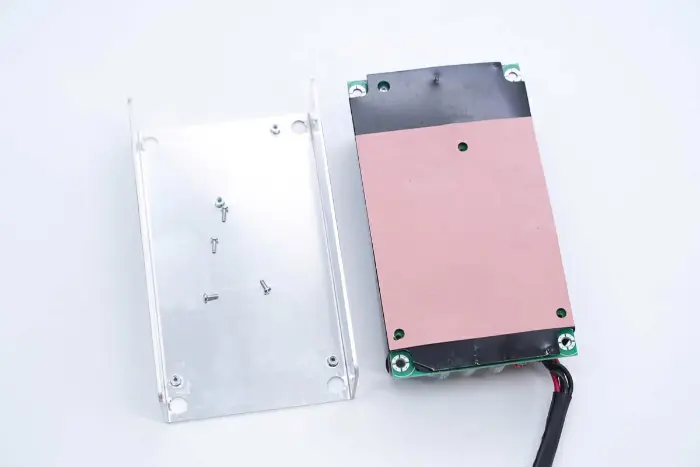 PCBA moodulil on kaetud ka alumiiniumisulamist jahutusradiaator ning toiteseadmed kinnitatakse kruvidega.