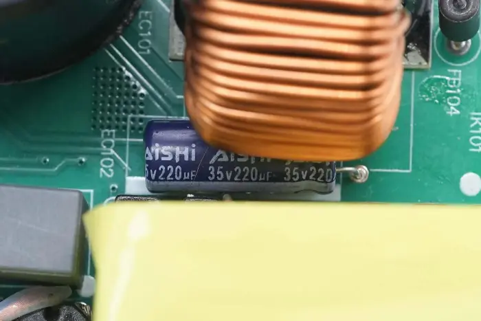 PFC võimendusinduktiivpool on keritud magnetrõngaga ja isolatsiooniks on allosas bakeliitleht.