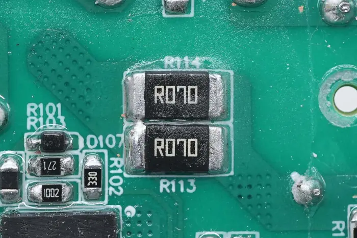 Lüliti voolu tuvastamiseks on paralleelselt ühendatud kaks 70mΩ takistit.