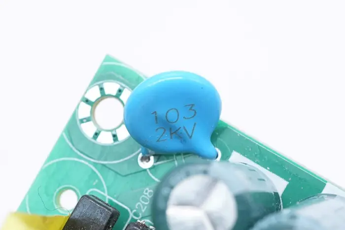 Väljundklemmi ja maanduse vahele on ühendatud keraamiline kondensaator spetsifikatsiooniga 0,01μF 2KV.