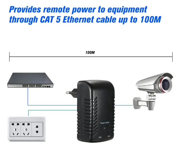 See mittestandardne seinakinnitusega Etherneti adapter, mis on konstrueeritud vastavalt 48 V IEEE 802.3af standardile, tagab stabiilse 15 W väljundvõimsuse, toetades täielikult enamikku POE-toitega IP-kaameraid, mis vajavad tavaliselt 15–25 W võimsust (välja arvatud suure võimsusega PTZ-mudelid). Samuti töötab see usaldusväärselt IP-telefonide ja muude seadmetega, mis ühilduvad 802.3af või 802.3at POE standarditega, pakkudes laialdast ühilduvust peale järelevalve seadistuste. Stabiilseks pikaajaliseks tööks loodud Wall Plug POE Injector ühendab toite- ja andmeedastuse ühe Etherneti kaabli kaudu, vähendades elamu-, äri- ja turvavõrguprojektide paigaldusaega ja materjalikulusid.