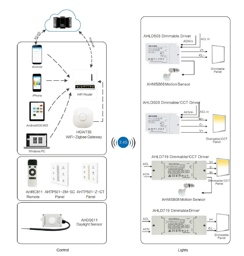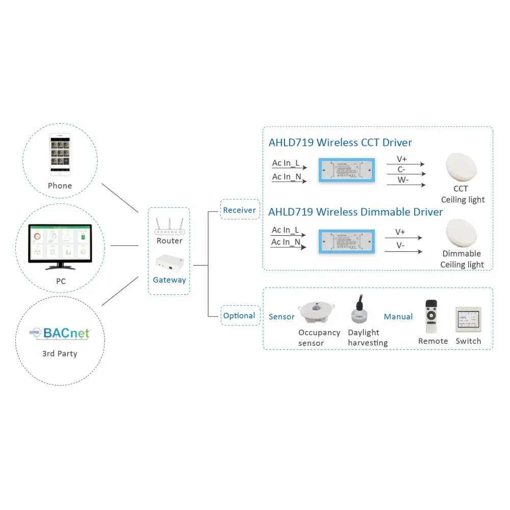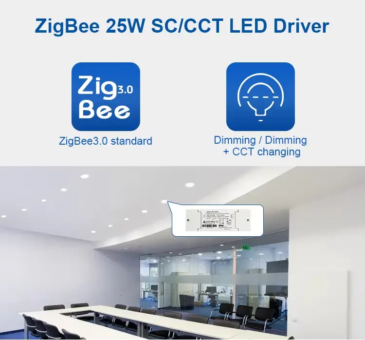 Draiver töötab Zigbee võrgus ja ühendub Zigbee lüüsiga, et võimaldada nutikaid valgustusfunktsioone, nagu ajakava, stseeni juhtimine, rühma juhtimine ja automatiseerimine. Seda tüüpi LED-draiverit kasutatakse tavaliselt nutikate kodude valgustussüsteemides, kaubanduslikes valgustusseadmetes ja intelligentsetes hoonete juhtimiskeskkondades.