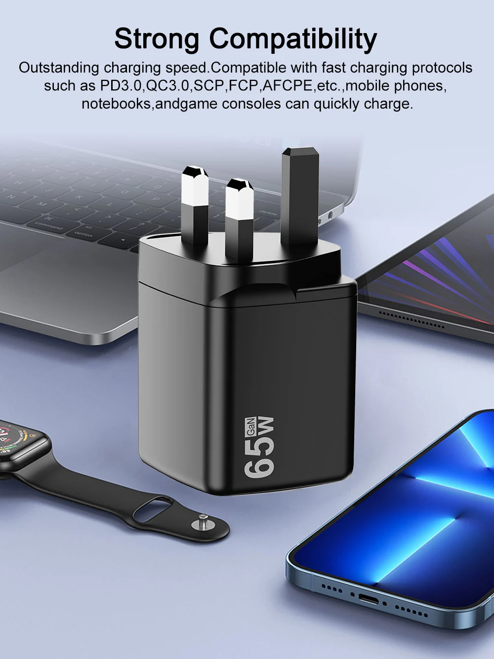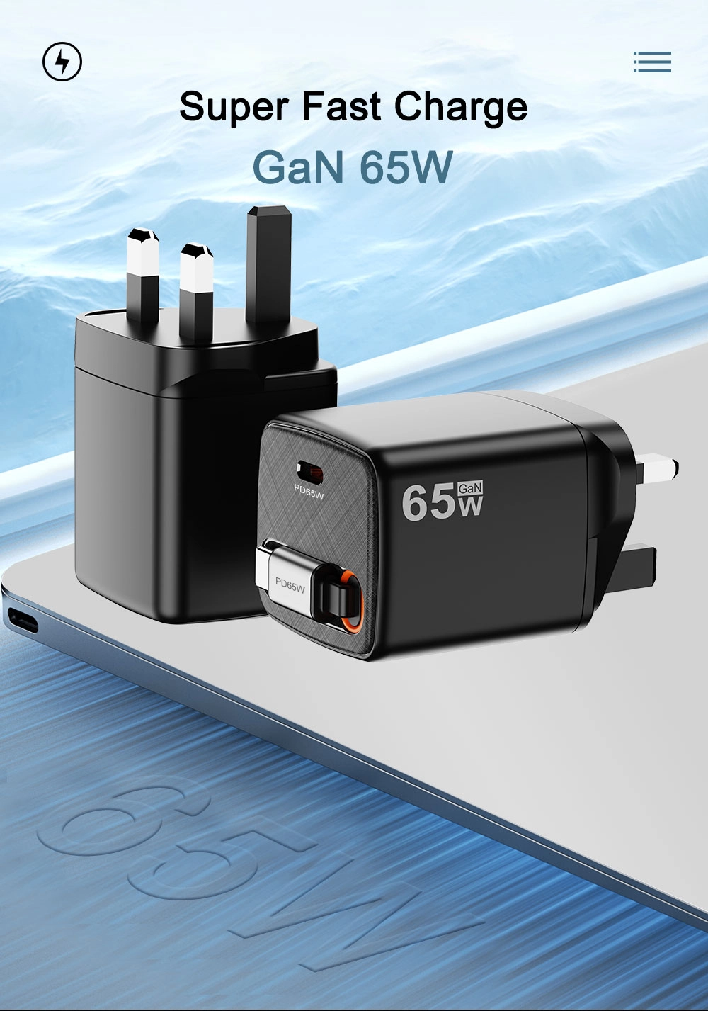 Ühendkuningriigi pistiku tüüp 65w kiirlaadija |