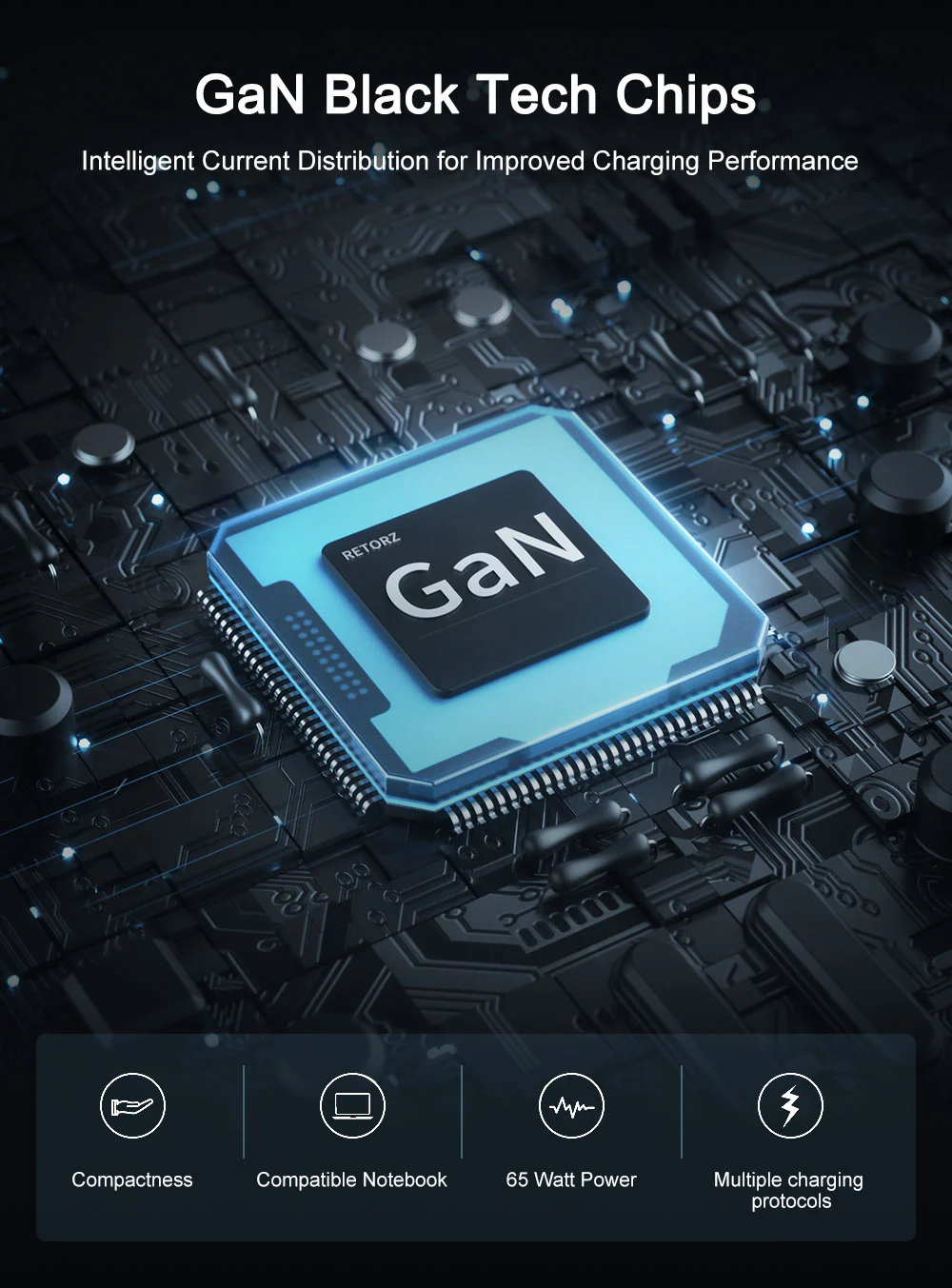 - Kiirlaadimine: 65 W väljund vähendab laadimisaega, pannes teie seadmed kiiresti sisse.