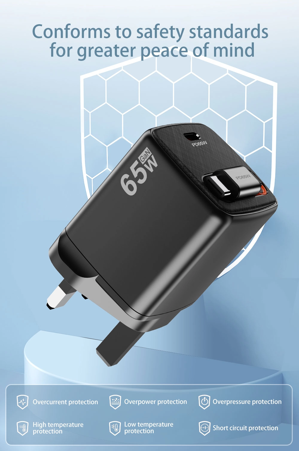 Ühendkuningriigi pistiku tüüp 65w kiirlaadija Tehnilised andmed: